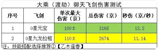 飛劍選擇方面,用0星九龍拉棺和0星元寶進(jìn)行測試,數(shù)據(jù)如下