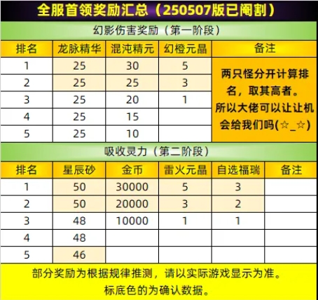 注:因缺乏樣本,所以部分獎(jiǎng)勵(lì)可能有些許出處,但大差不差。