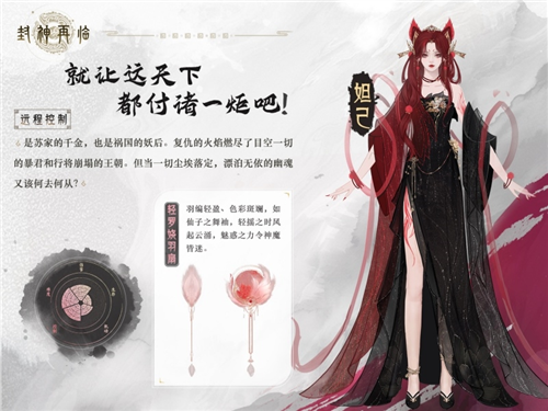 提到妲己,大多數(shù)人最先想到的一定是“禍國(guó)殃民”四個(gè)字,若說(shuō)帝王江山敗頹之勢(shì)盡數(shù)歸結(jié)于此,未免過(guò)于苛責(zé)?!斗馍裱萘x》原著中,紂王因輕辱女媧,才招致禍端,而妲己,不過(guò)是助周滅商的一枚棋子。重走封神路,妲己不再是任人擺布,受人利用的單純狐妖,女媧娘娘的所謂天道,正邪忠奸,不過(guò)都是封神榜中早已預(yù)留好的位置?;甏┨K家養(yǎng)女,找尋前世記憶,這一次,她要為自己而活。