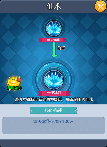 技能介紹很簡單理解,命中怪物就可以凍結(jié),且合成路徑也比較簡單,只要解鎖冰晶術(shù)就有概率刷到。? ??
