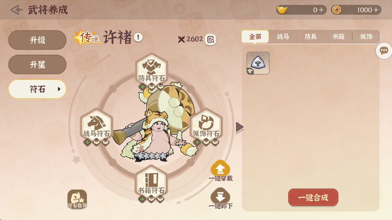 每個部位符石最多能裝配3枚,武將星級提升后可解鎖符石位置。