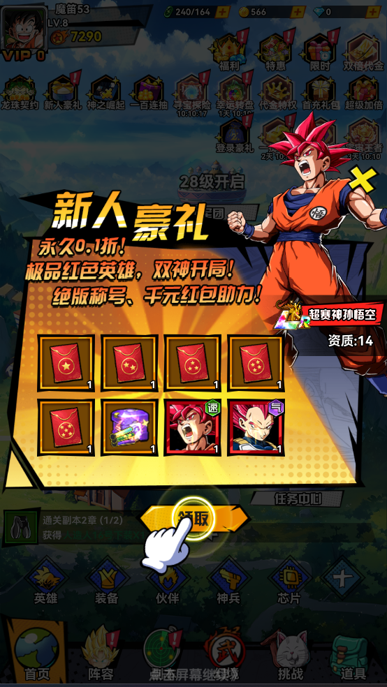 1、?創(chuàng)角即送超賽神孫悟空&超賽神貝吉塔,雙神開局!