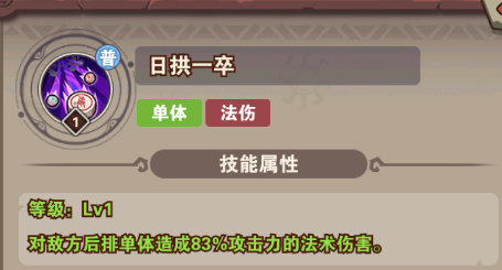 技能介紹:普攻技【日拱一卒】 對敵方后排造成攻擊傷害