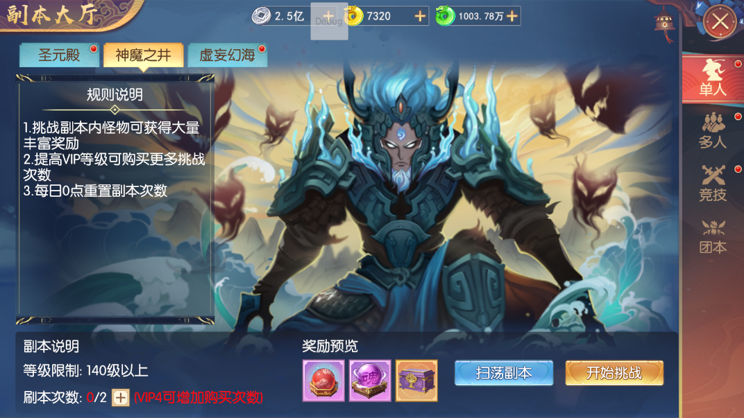 (1)140級(jí)開(kāi)啟,單人PVE玩法,神魔之井,可獲得大量丹藥