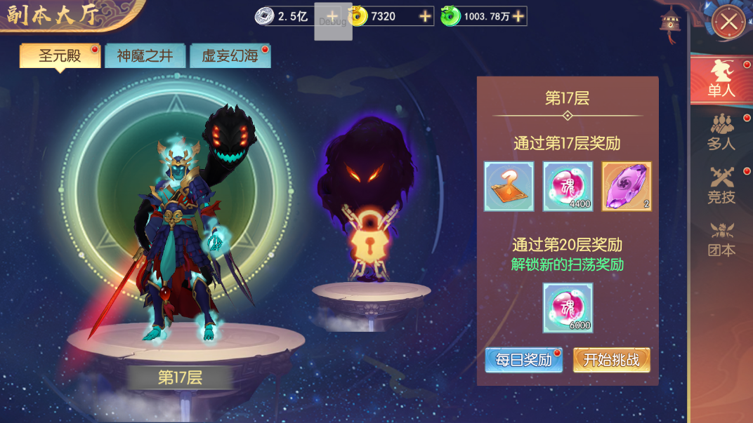 (5)220級(jí)開(kāi)啟,單人PVE爬塔玩法,圣元殿,可獲得大量極品命格