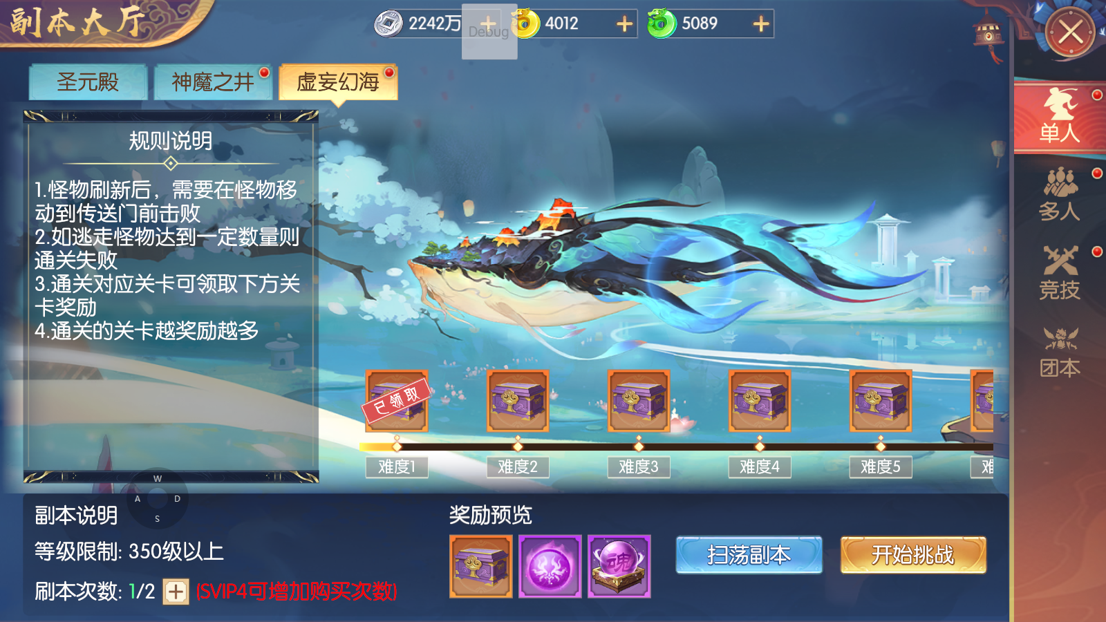 (7)270級(jí)&第5天開(kāi)啟,單人PVE玩法,虛妄幻海,可獲得化鯤養(yǎng)成材料