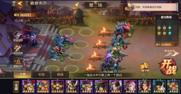 赤壁之戰(zhàn)分為第一場(chǎng)和第二場(chǎng),各位少主要根據(jù)敵人的陣容搭配出兩隊(duì)合適的陣容!通關(guān)后可以獲得靈草,