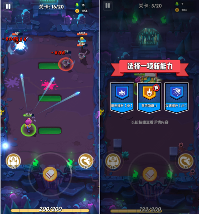 每通過(guò)一定的關(guān)卡數(shù)后,便會(huì)獲得空投獎(jiǎng)勵(lì),選擇強(qiáng)化本次闖關(guān)的能力,合理選擇需要的能力,可以幫助玩家通過(guò)更多的關(guān)卡。
