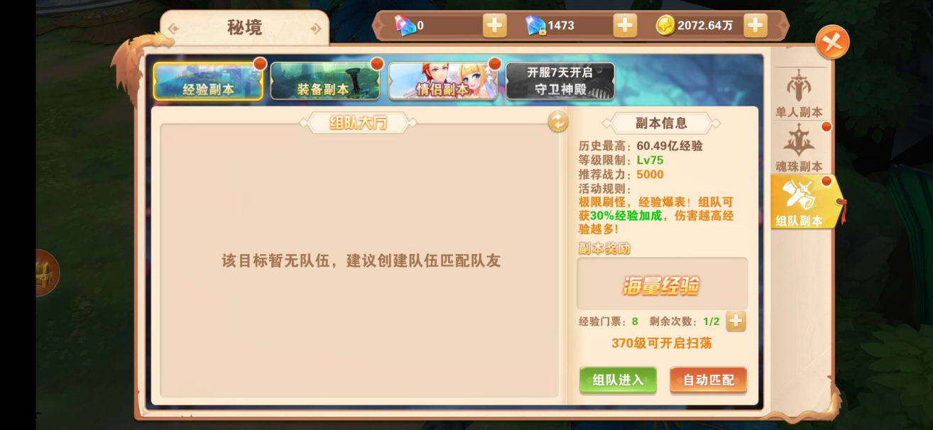 1.經(jīng)驗(yàn)副本(Lv75開(kāi)啟)