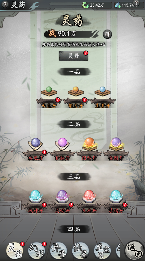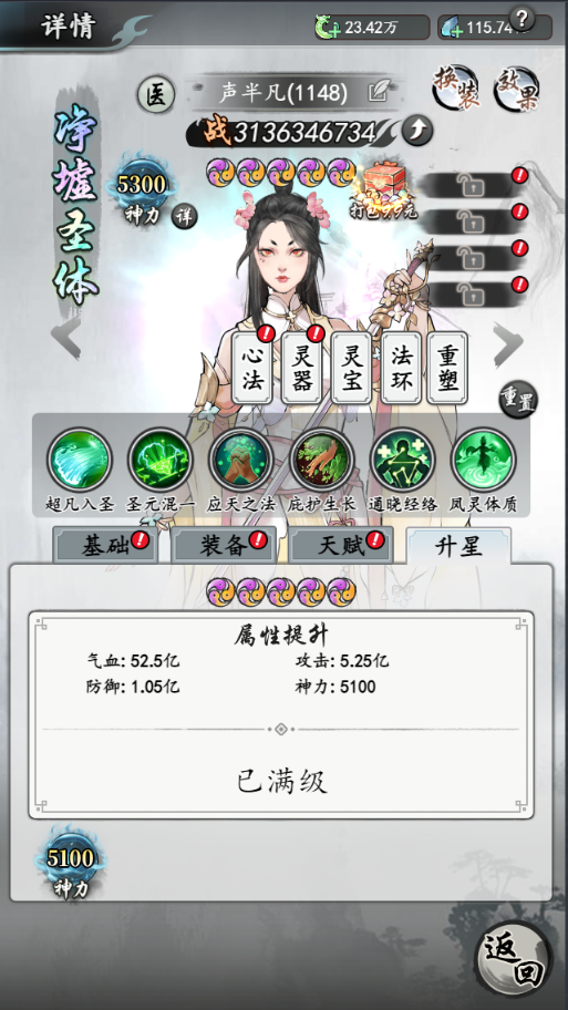 資質(zhì)系統(tǒng),這里的資質(zhì)除了常規(guī)的天命外還包含了靈藥系統(tǒng)和天賦系統(tǒng),游戲內(nèi)的資質(zhì)是可以進行洗練的,除此之外還可以通過吞噬靈丹或者天才地寶來為主角提升永久的屬性。游戲內(nèi)的天賦會順著主角的進階慢慢的提升,其中的過程就相當于修仙小說中的修真廢材通過一步步的考驗變?yōu)樯瞎牌娌乓粯?。除此之外游戲?nèi)的境界同樣也是對照修仙小說一比一還原的,戰(zhàn)力也會隨著境界的提升慢慢的增加,所以前期想要提升戰(zhàn)力突破境界是必不可少的。