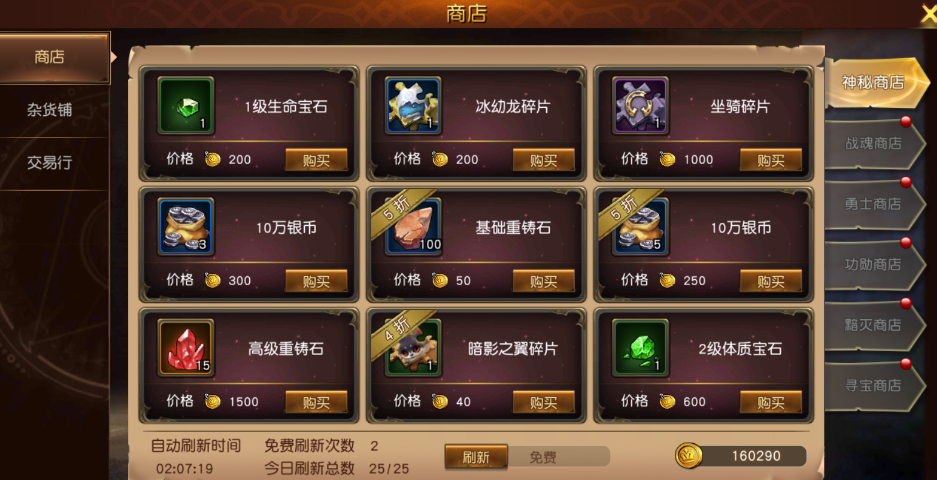 銀幣:銀幣作為游戲內(nèi)功能消耗性道具,銀幣的獲取途徑也幾乎涵蓋了游戲內(nèi)的各大玩法。主線關卡、世界塔、哥布林副本、競技場、團隊副本、遺跡副本,都能獲得銀幣。在雜貨鋪除此之外,在每日的在線活動,簽到以及活躍度獎勵中也能獲取少量銀幣。