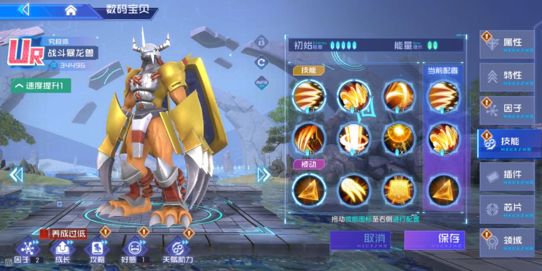 l?功能入口:主界面→【數(shù)碼寶貝】→選擇對(duì)應(yīng)數(shù)碼寶貝→【養(yǎng)成】→【技能】→【配置】