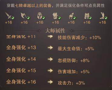 強化+11強化需要的材料、積分少,性價比較高,建議玩家主要激活+11屬性: